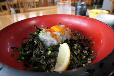 相も変わらず ”生しらす丼” でっす。これがお値段もそこそこで美味しいので言うことなしです(*^_^*)オイシイノ